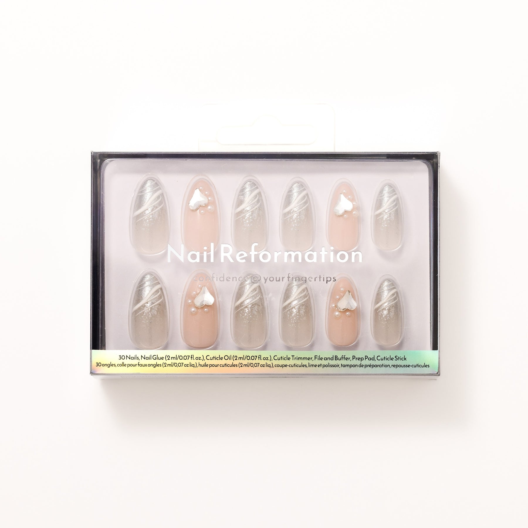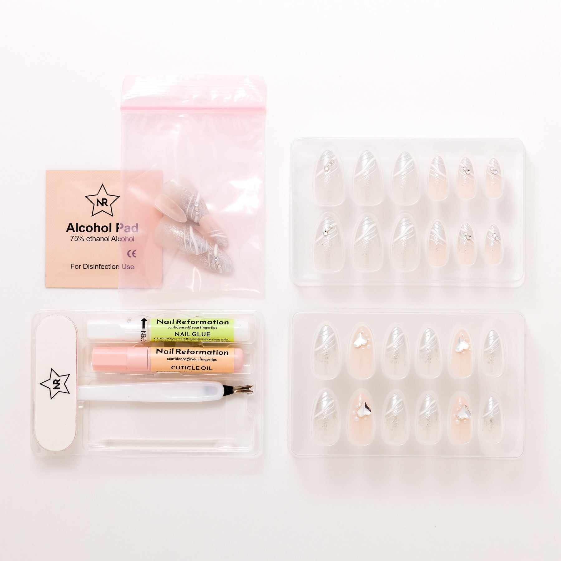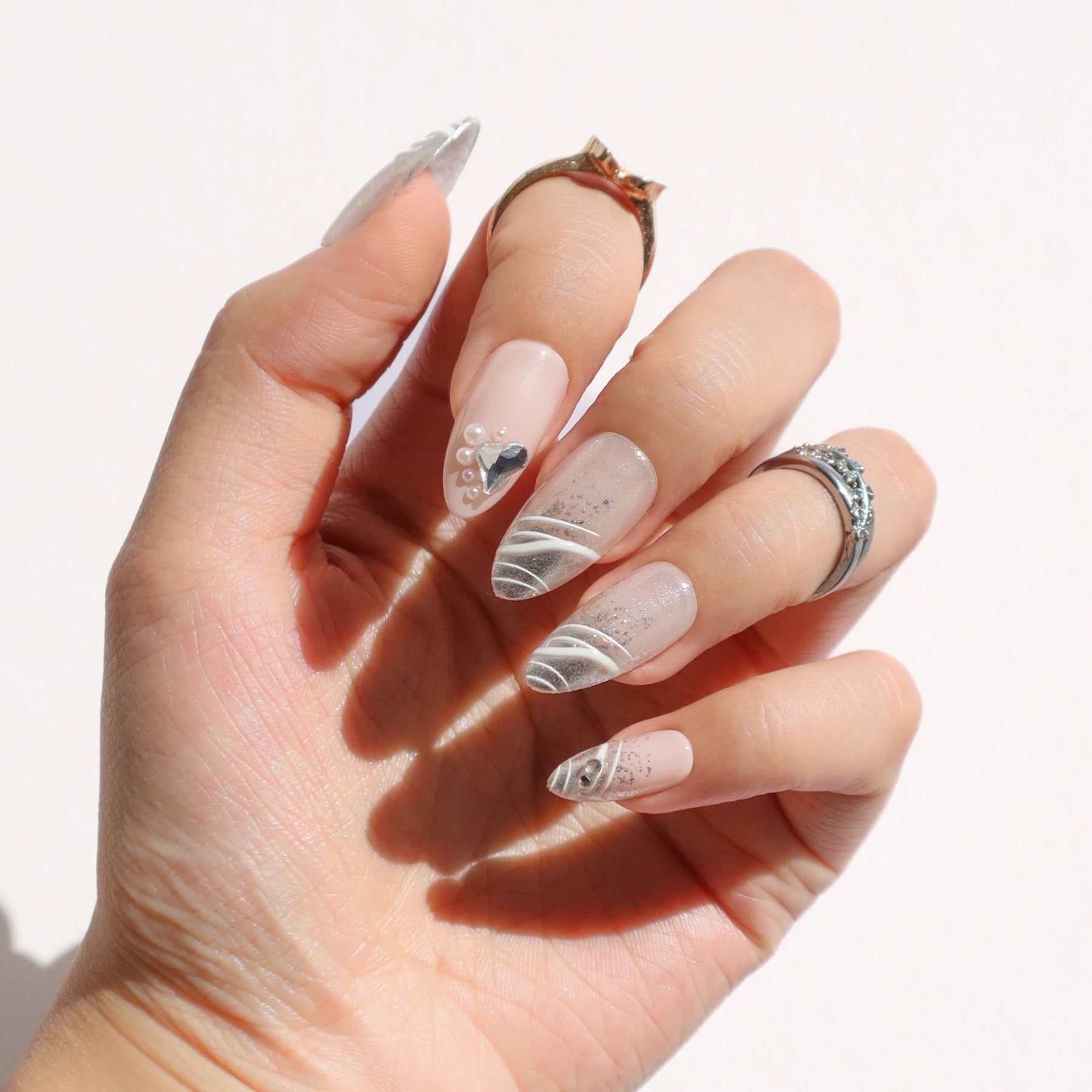 Dripping in luxury. The Diamond Clutch press-ons sparkle like a show-stopping accessory with silver glitter, 3D embossed accents, and jewel embellishments that catch the light from every angle. Finished with soft pearl details and a sculpted shimmer, this set turns any look into a full-glam moment worthy of the red carpet.