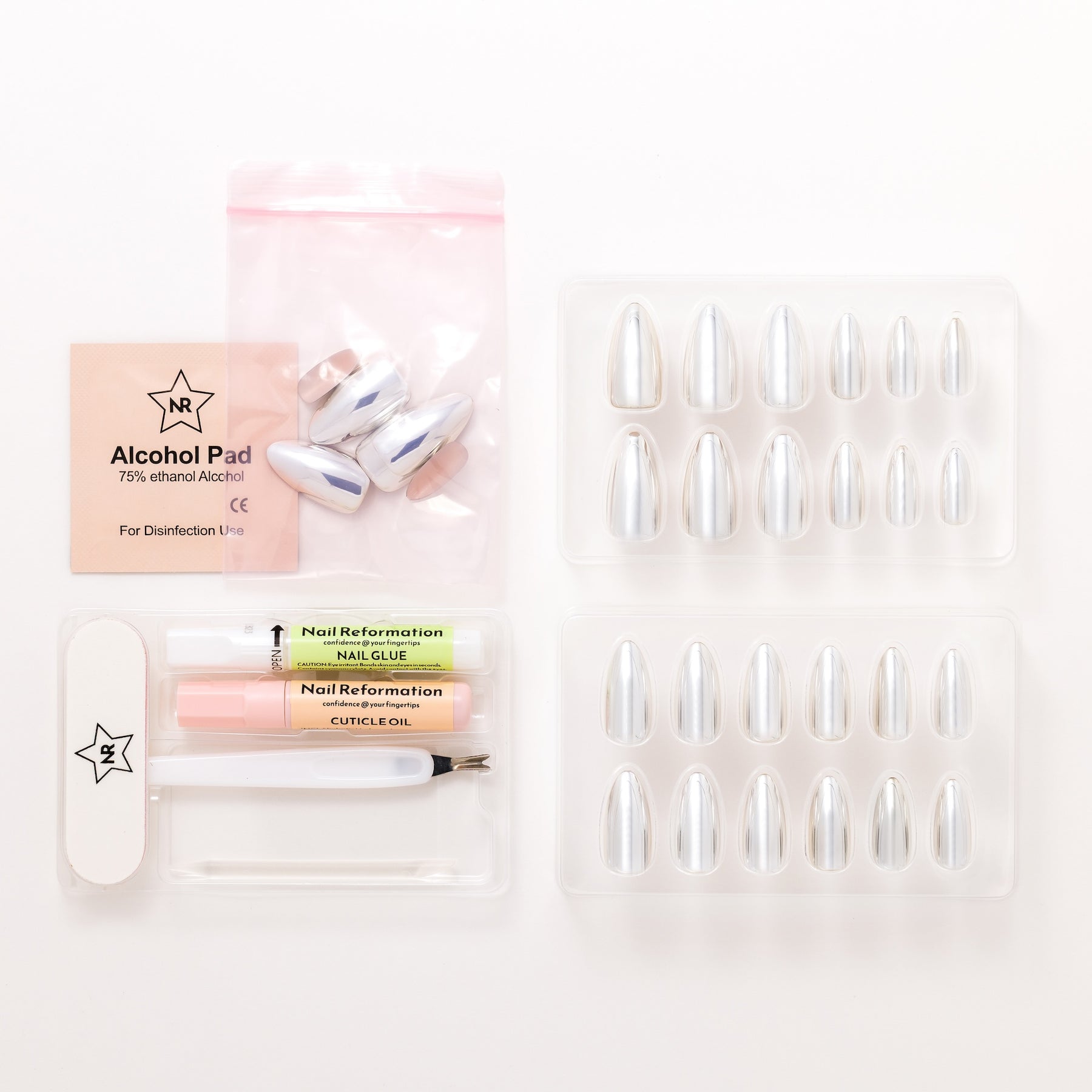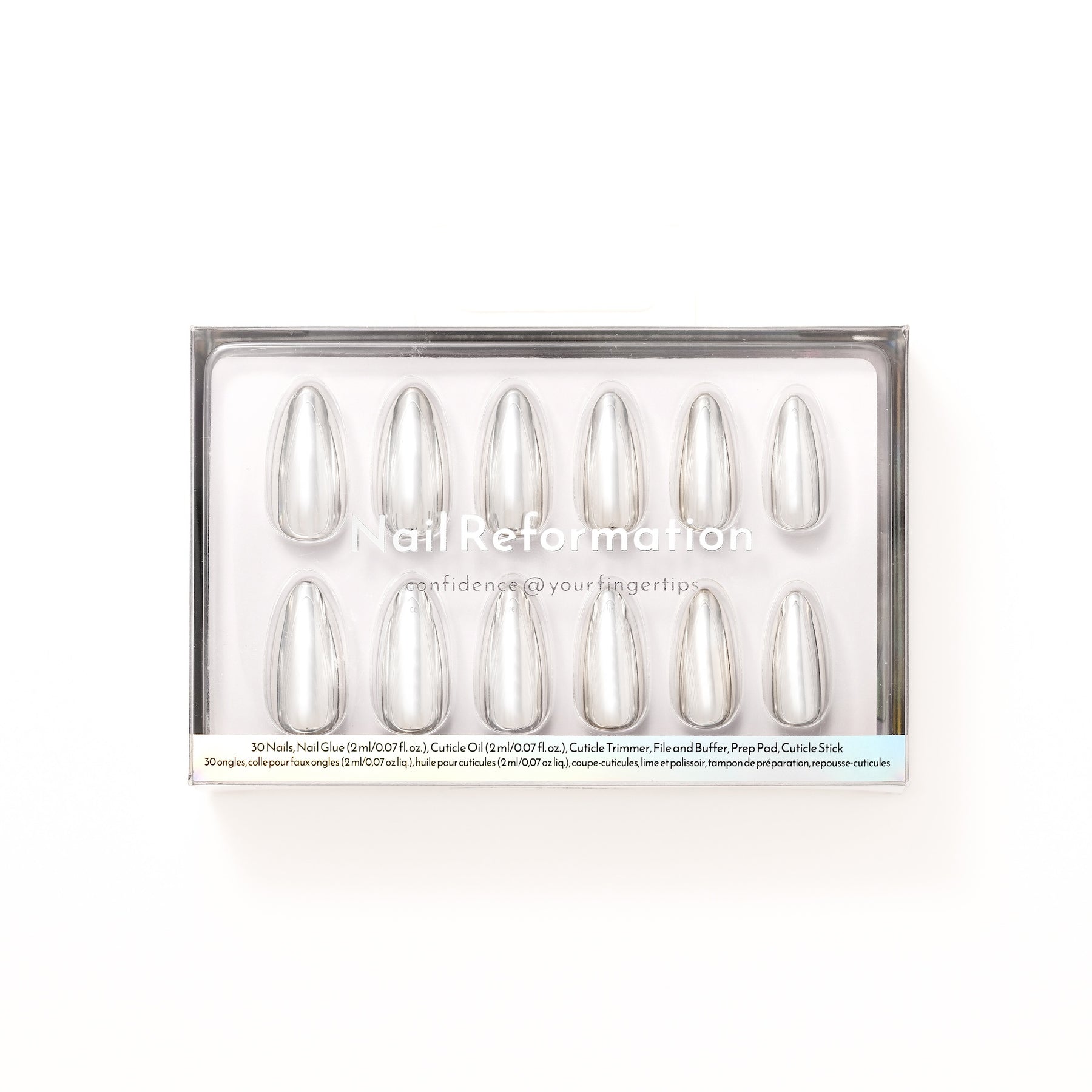 Mirror the moment. The Silver Reflections press-ons redefine statement shine with a liquid-metal chrome finish that captures every light and movement. Their medium almond almond balances edge with elegance, creating a look that’s both futuristic and timeless. Perfect for ringing in the new year or turning any night into an occasion, these metallic press-ons make every reflection unforgettable.